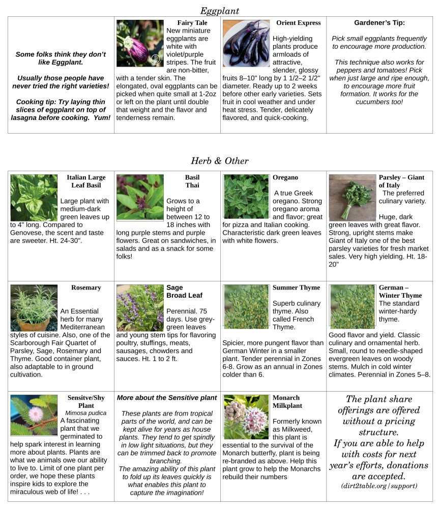 Thank you for your donations. Note that Venmo is not available. If you would like to donate, please donate through our Paypal account and make sure to mark it for “dirt2table plantshare”.