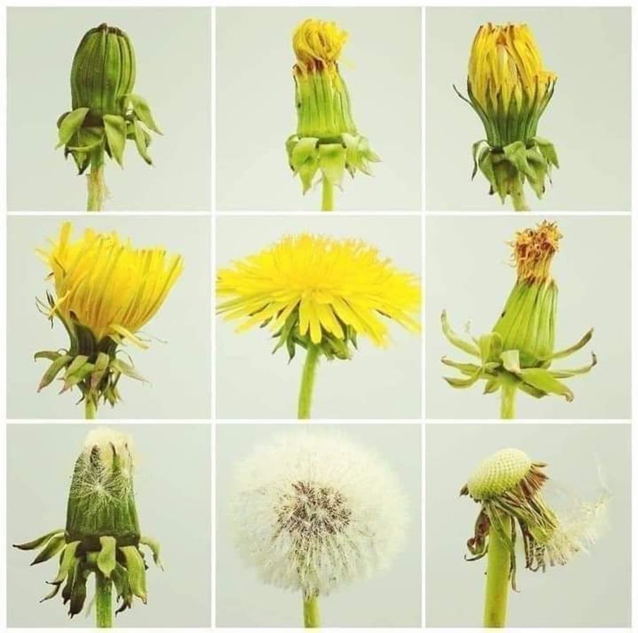 The dandelion flower opens to greet the morning and closes in the evening to go to sleep.