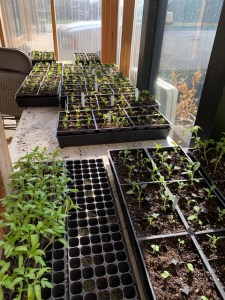 Nearly 7,000 vegetable and herb plants have now been transplanted into what will be there homes for the next 3-4 weeks.  Prior to the May 4 Celebration of Spring and Community Plant Sale people can pre-order their plants and on May 4 people can come to get plants and partake in education and networking. This project is truly a community endeavor with about 20 volunteers, hundreds of hours of volunteer work, witnessing the growth of plants from seed, and excitement over growing food.